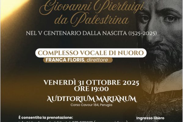 Venerdì 31 ottobre, alle 19, all'Auditorium Marianum "Omaggio a Giovanni Pierluigi da Palestrina" del Complesso Vocale di Nuoro. Read More Leggi di più