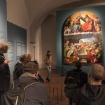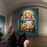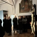 Dopo un primo momento di riflessione, partendo proprio dall’etimologia della parola Giubileo, dal suo significato storico e dalla sua dimensione spirituale, i monaci hanno potuto compiere un percorso alla scoperta delle tre opere esposte a cui è affidato il delicato compito di raccontare il tema della Speranza. Seguendo il percorso espositivo della mostra, hanno avuto la possibilità di ammirare il prezioso Crocifisso di Giovanni Teutonico eccezionalmente concesso in prestito dal Monastero di Sant’Erminio, la predella con Storie della vita di Maria in prestito dalla Galleria Nazionale dell’Umbria fino a giungere dinanzi alla grande Pala di Monteluce, in cui tra armonie calibrate e sapienti contrasti, emerge la qualità raffinata della bottega di Raffaello.