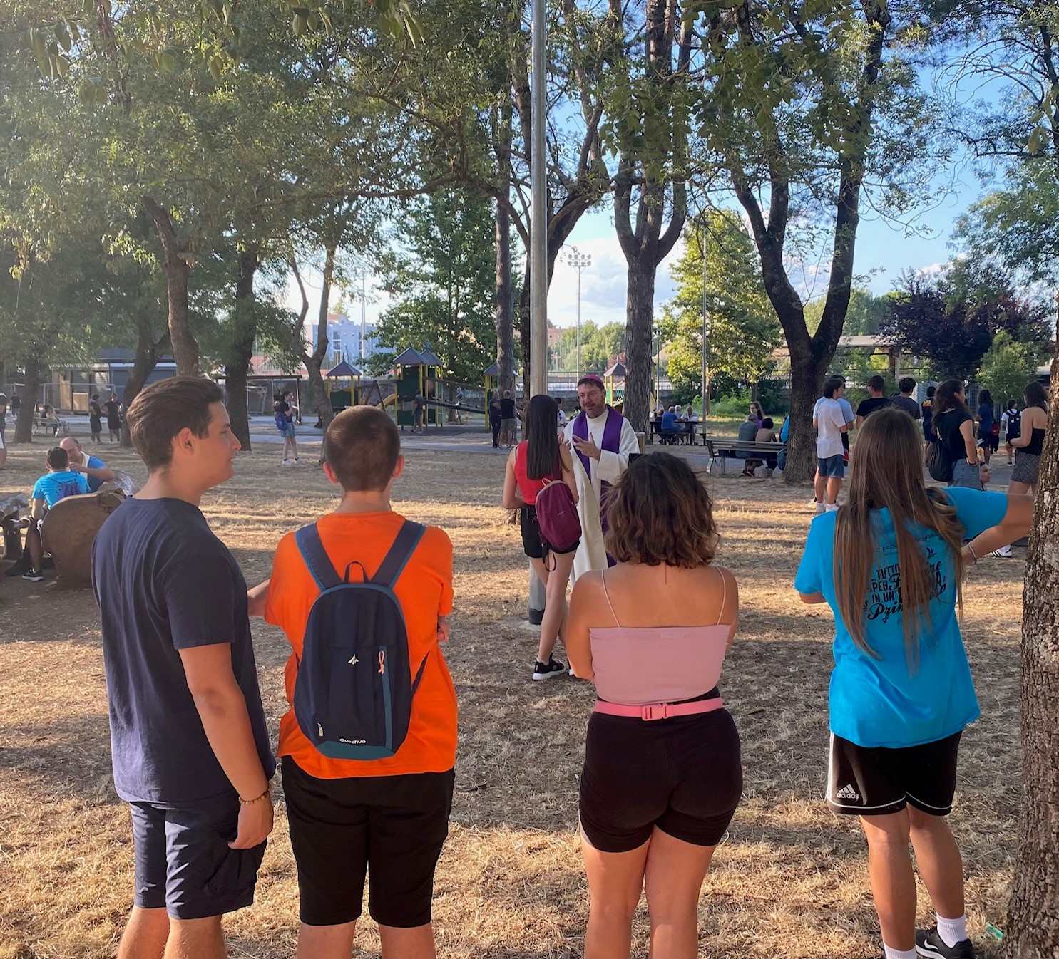 Giovani pellegrini umbri con loro sacerdoti e arcivescovo da Civita Castellana a Roma per il Giubileo 2025 f16