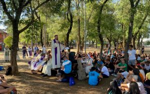 Giovani pellegrini umbri con loro sacerdoti e arcivescovo da Civita Castellana a Roma per il Giubileo 2025 f7