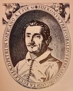 Il nome di Girolamo Frescobaldi si impose perché si desiderava scegliere la figura di un musicista il più possibile rappresentativo dell’attività della scuola: compositore sacro, virtuosista, accademico di Santa Cecilia in Roma e organista della basilica di San Pietro per oltre un ventennio.