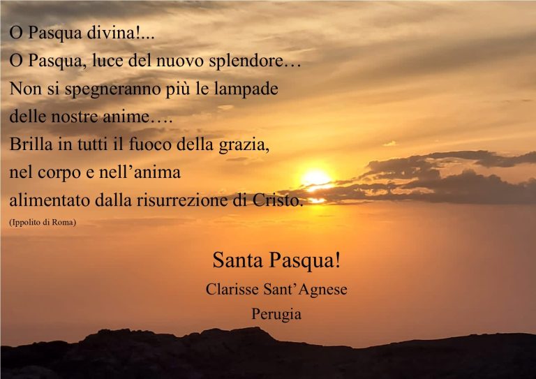 Ai giovani dai 18 ai 30 anni le Sorelle Clarisse del monastero di Sant’Agnese propongono l’occasione di vivere il Triduo Pasquale presso la foresteria del monastero, da giovedì 2 aprile a domenica 5 dopo pranzo. Un’avventura alla ricerca del Signore Gesù e per scoprire se stessi. Locandina in allegato
