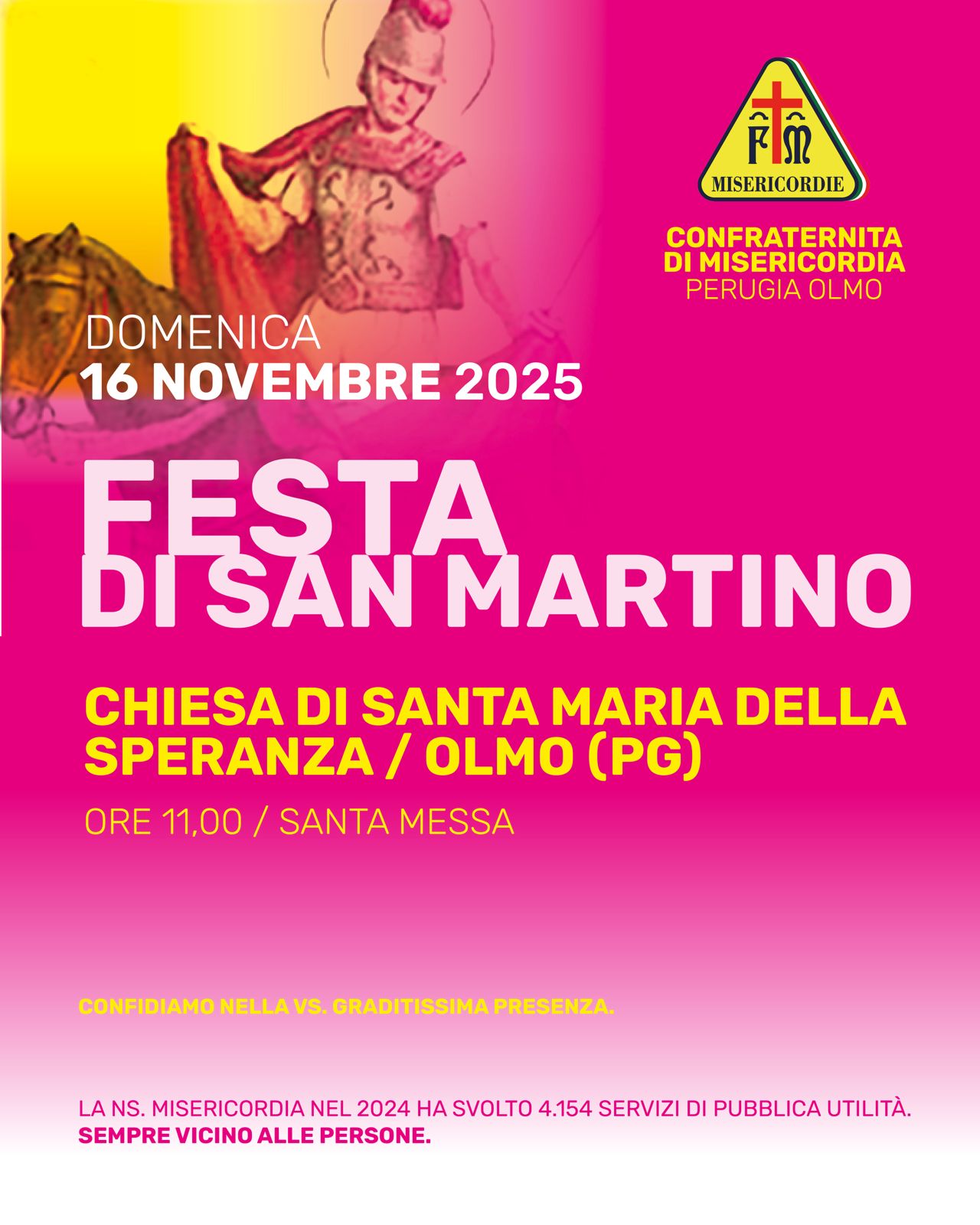 La Misericordia di Perugia – Olmo promuove per domenica 16 novembre la Festa Annuale: alle 11 Santa Messa presso la chiesa di Santa Maria della Speranza in Olmo.