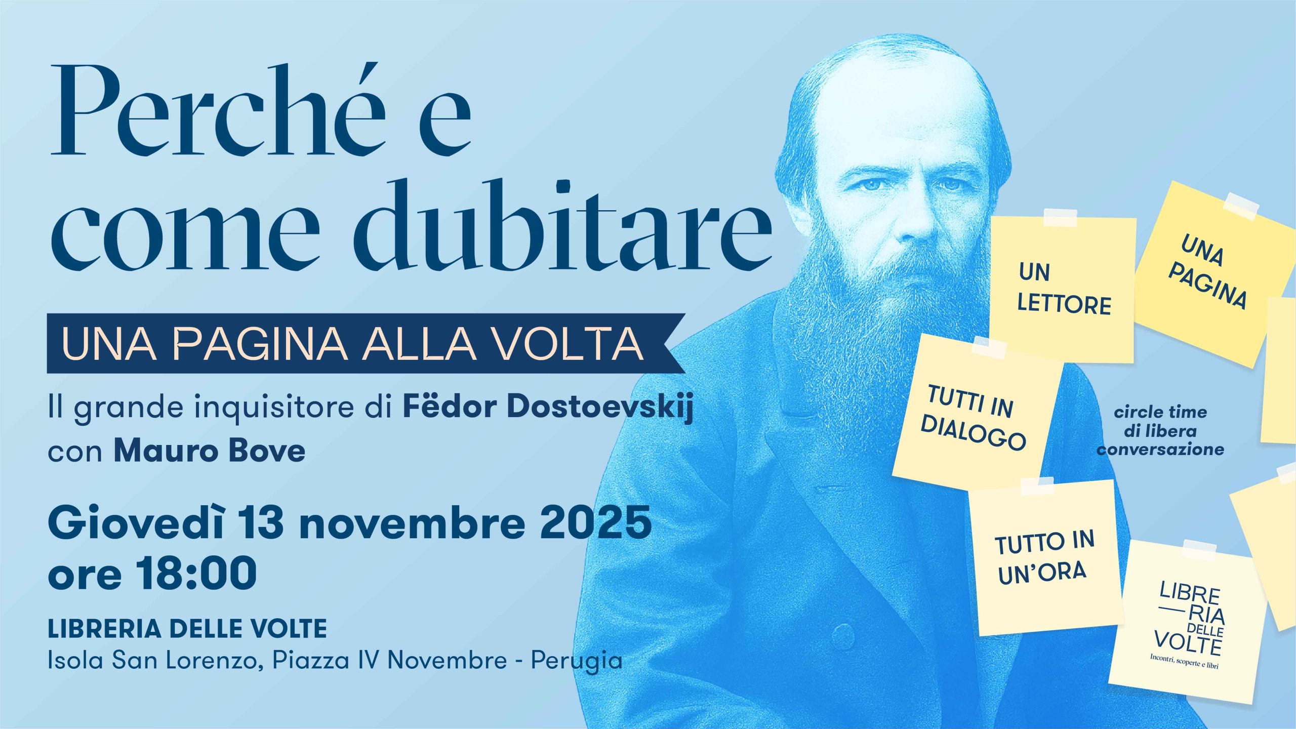 Al centro della serata ci sarà una pagina tratta da I fratelli Karamazov di Fëdor Dostoevskij: il celebre dialogo – o meglio, doppio monologo – tra Ivan e Alesa, due dei quattro fratelli, divisi da temperamento, fede e visione del mondo. Ivan si ribella a Dio di fronte all’ingiustizia del dolore innocente, in particolare dei bambini. Poi, con il racconto del “Grande Inquisitore”, immagina un secondo ritorno di Cristo sulla terra, accusato proprio di aver dato all’uomo un peso troppo grande: la libertà. Un dialogo straordinario sulla responsabilità, sulla fede e sull’eterno conflitto tra verità e potere.