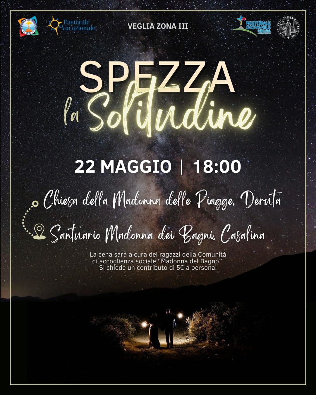 Giovedì 22 maggio, alle 18, incontro promosso dai giovani della 3ª Zona con partenza dalla Chiesa della Madonna delle Piagge e, alle 21, Veglia di preghiera con l’Arcivescovo presso il Santuario della Madonna dei Bagni.