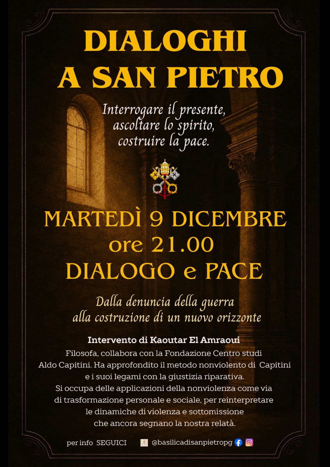 Intanto proseguono anche in Basilica gli incontri de “I Dialoghi a San Pietro”.