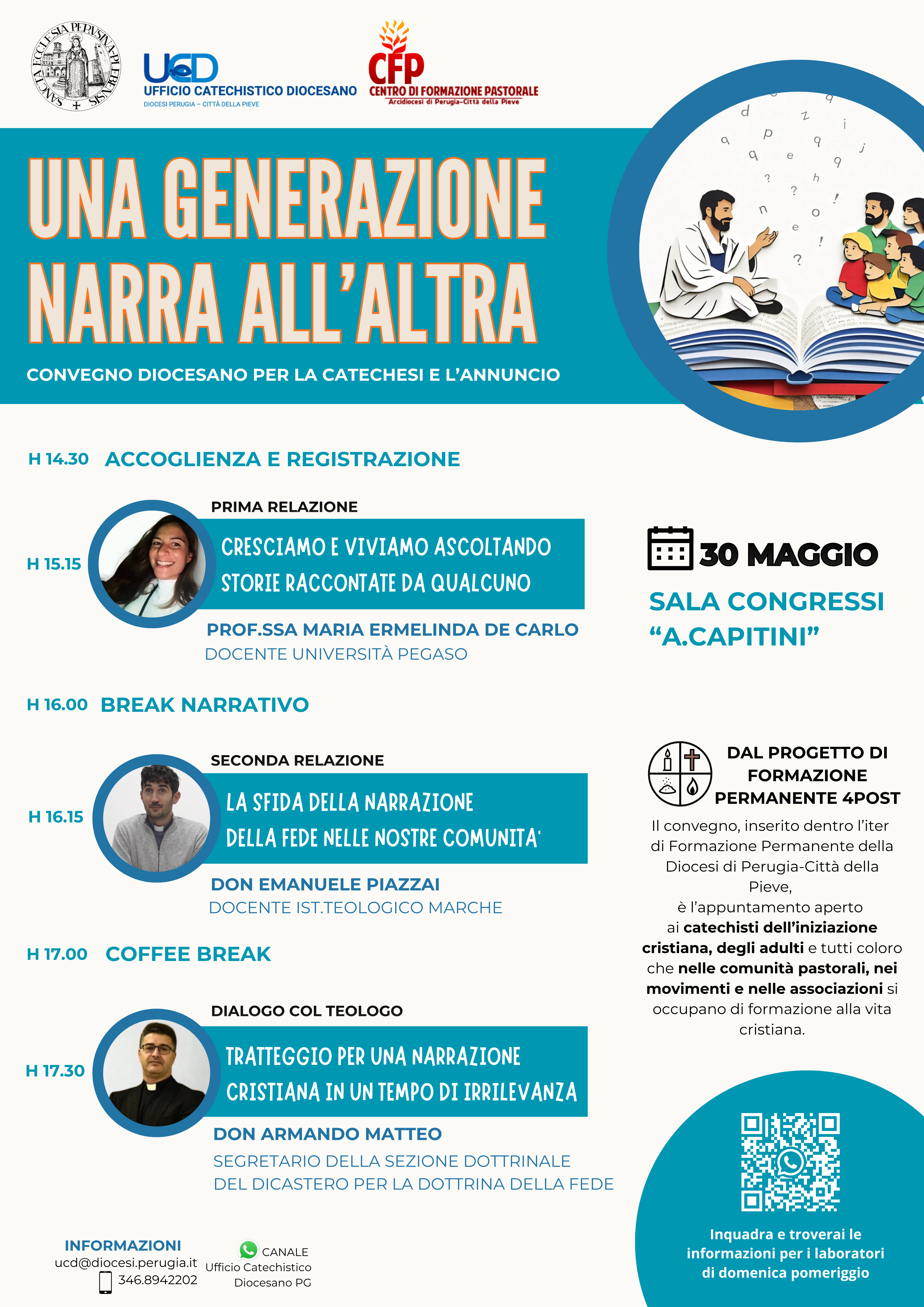 Dopo una pausa narrativa, in cui due giovani ci permetteranno di ascoltare una breve drammatizzazione, don Emanuele Piazzai, della diocesi di Senigallia, docente presso l’Istituto teologico marchigiano e direttore della commissione regionale per la catechesi delle Marche, entrerà nel cuore del tema mostrando, spero possano essere sufficienti 45 minuti, come la fede cristiana sia, fin dalle origini, una storia raccontata: