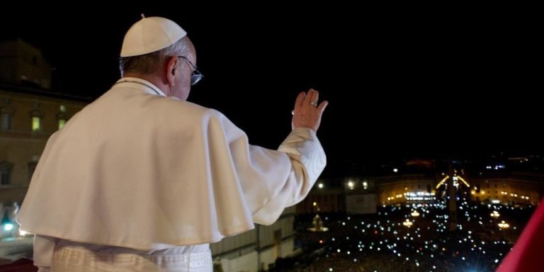 La sera piovigginosa di un altro 13 marzo. Con un nome che racchiude un programma – Francesco – si affaccia dalla loggia della basilica di San Pietro il 265° Successore di Pietro.