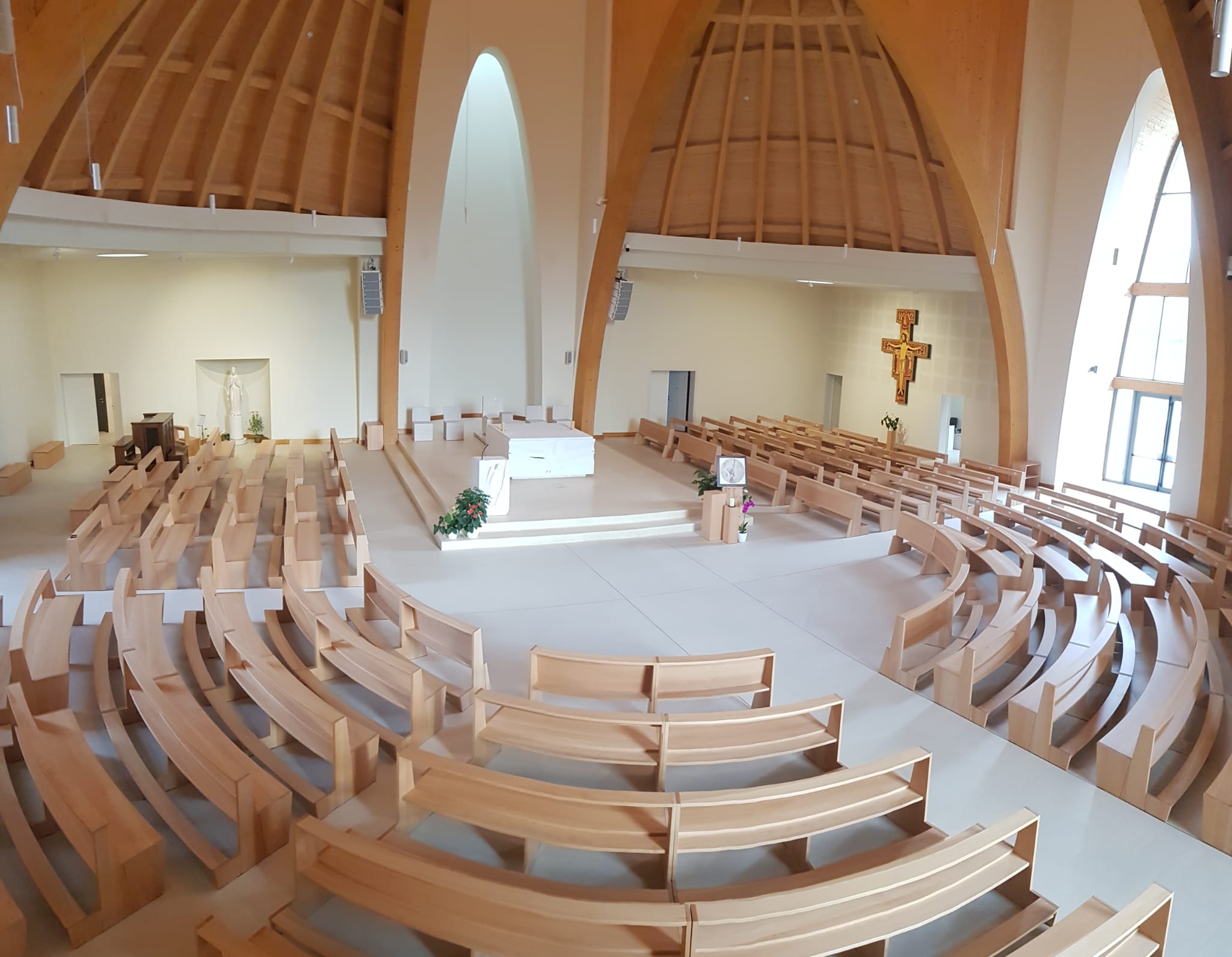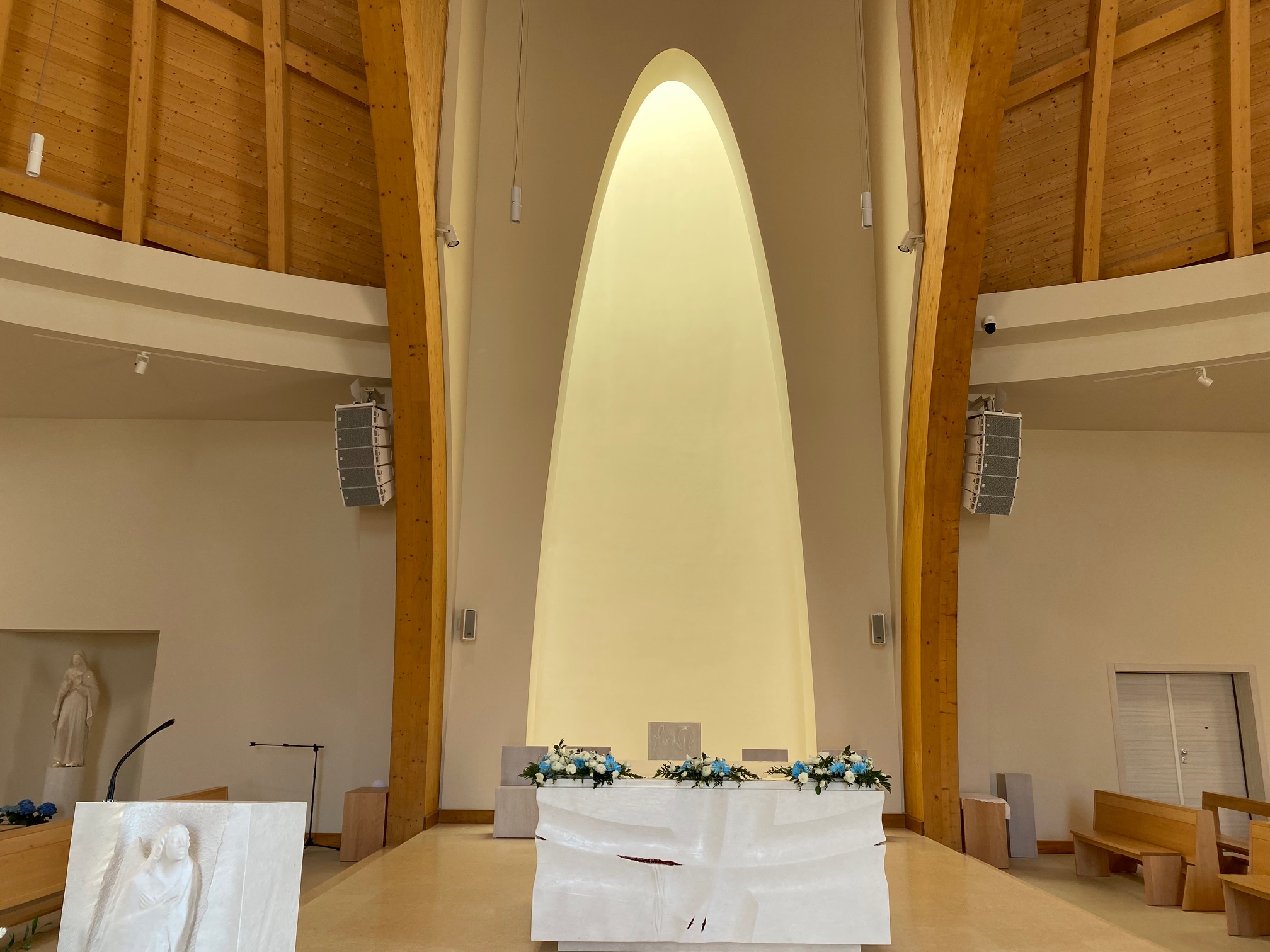 I punti cardinali più uno. A parlarne sono i quattro sacerdoti di questa grande comunità interparrocchiale, dal decano, che tanto ha voluto il nuovo complesso, mons. Giuseppe Gioia, per i fedeli semplicemente “don Peppe”, ai più giovani: don Oscar Walter Huaman Bustamante, di origini peruviane, don Fabrizio Crocioni, parroco e rettore del Santuario mariano di Ponte della Pietra, e all’ultimo consacrato ed anche il più giovane, don Antonio Paoletti, nipote dell’indimenticabile arcivescovo Giuseppe Chiaretti a cui stava particolarmente a cuore anche la costruzione di «belle chiese moderne, non fredde cattedrali nel deserto», come spesso si raccomandava. E la chiesa San Giovanni Paolo II di Perugia è la testimonianza visiva di questa raccomandazione raccolta pienamente. Ne vanno orgogliosi i suoi sacerdoti, i quattro punti di riferimento di questa comunità, come i quattro punti cardinali, più uno, suor Roberta Vinerba, francescana diocesana, nota teologa, catechista e animatrice di generazioni di adolescenti, portavoce del “villaggio di relazioni” che tanto si è prodigata per l’edificazione del complesso parrocchiale insieme ai quattro sacerdoti.