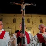 “Questa sera abbiamo fatto un grande dono alla città – ha proseguito l’arcivescovo Maffeis -, ricordando ai nostri concittadini la forza della Pasqua, il dono che Cristo ha fatto di sé stesso per la Chiesa e per l’intera umanità”. Poi, rivolgendosi a quanti si sono prodigati ad organizzare e ad animare la Via Crucis, ha detto: “Un grazie al coro, agli amici di Comunione e Liberazione, della Comunità Magnificat, dell’Ordine Equestre del Santo Sepolcro di Gerusalemme e a tutti voi. Ciascuno questa sera è stato Parola, Parola di Dio per la Città. Con questo spirito mentre ci apprestiamo ad attraversare il lungo Sabato Santo fatto di silenzio e di attesa per poterci ritrovare nella gioia della Pasqua, ci diamo appuntamento per un gesto analogo: giovedì 4 giugno, alle 20.30, celebreremo insieme il Corpus Domini con la celebrazione eucaristica e a seguire la processione dalla cattedrale alla basilica di San Domenico. Sarà un giovedì, un giorno di lavoro ma anche un giorno che ci ricorda, appunto, il dono eucaristico di Gesù”. A Perugia sarà la prima volta, dopo diversi decenni, che la solennità del Corpus Domini si terrà il giovedì anziché la domenica.
