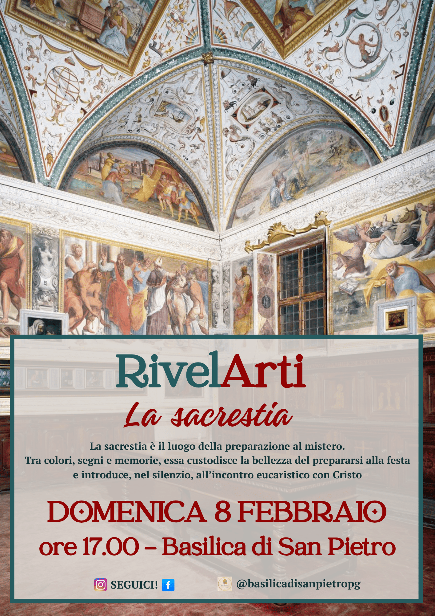 È stato intitolato RivelarTi, con un gioco di parole dal significato facilmente intuibile, il ricco cartellone di un percorso illustrato tra le meraviglie della Basilica di San Pietro in Perugia, dal 12 ottobre al 10 maggio 2026, una domenica al mese, con inizio alle cinque del pomeriggio.