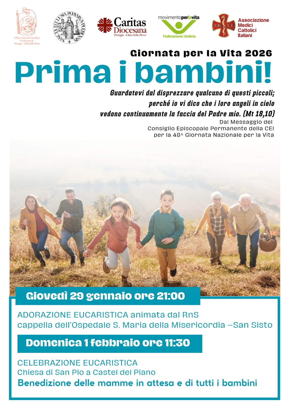 Domenica 1° febbraio si celebra la Giornata per la Vita, preparata giovedì 29 gennaio da un’adorazione eucaristica presso la chiesa dell’Ospedale di Perugia. Il Messaggio dei Vescovi e la celebrazione a Castel del Piano.